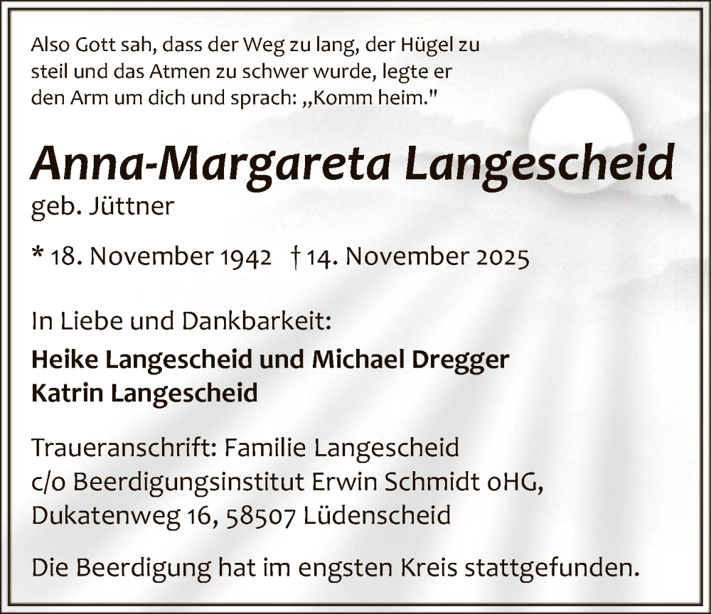 Hier finden Sie alle Traueranzeigen aus der Zeitung, die bisher für Anna-Margareta Langescheid erschienen sind. Weitere Traueranzeigen, die in der Zeitung erscheinen, werden hier ebenfalls aufgelistet