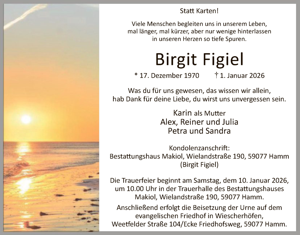 Hier finden Sie alle Traueranzeigen aus der Zeitung, die bisher für Birgit Figiel erschienen sind. Weitere Traueranzeigen, die in der Zeitung erscheinen, werden hier ebenfalls aufgelistet