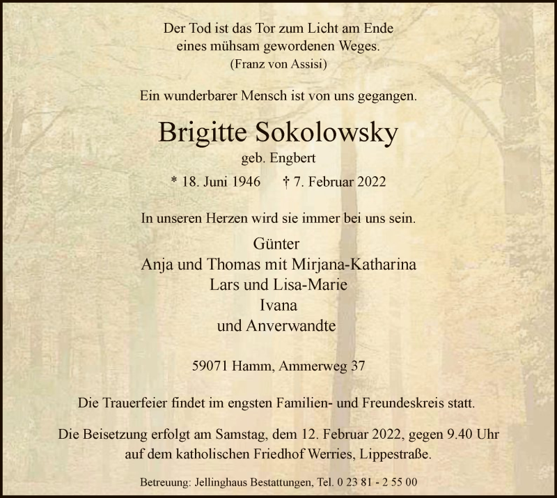 Hier finden Sie alle Traueranzeigen aus der Zeitung, die bisher für Brigitte Sokolowsky erschienen sind. Weitere Traueranzeigen, die in der Zeitung erscheinen, werden hier ebenfalls aufgelistet