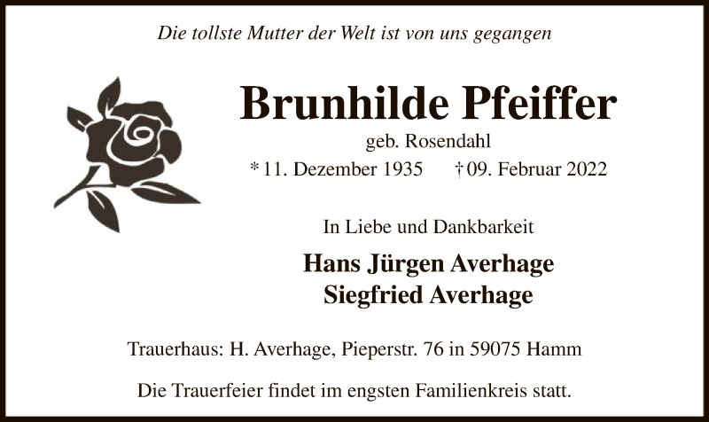 Hier finden Sie alle Traueranzeigen aus der Zeitung, die bisher für Brunhilde Pfeiffer erschienen sind. Weitere Traueranzeigen, die in der Zeitung erscheinen, werden hier ebenfalls aufgelistet