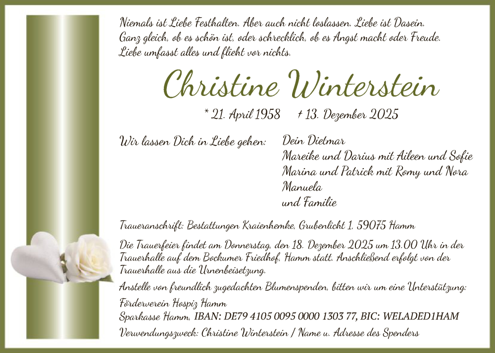 Hier finden Sie alle Traueranzeigen aus der Zeitung, die bisher für Christine Winterstein erschienen sind. Weitere Traueranzeigen, die in der Zeitung erscheinen, werden hier ebenfalls aufgelistet