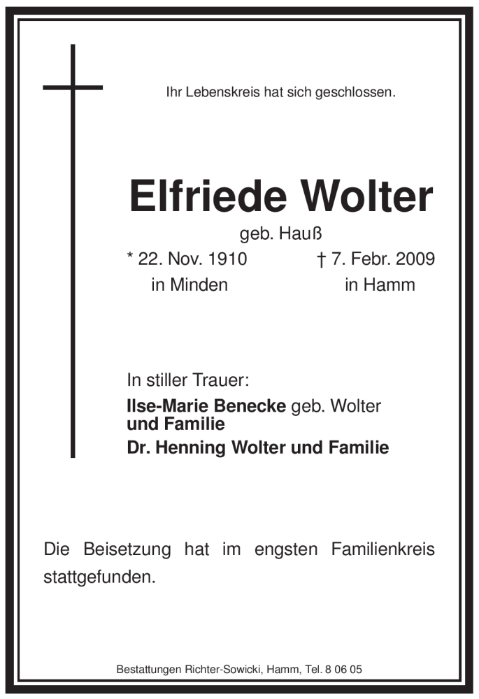 Hier finden Sie alle Traueranzeigen aus der Zeitung, die bisher für Elfriede Wolter erschienen sind. Weitere Traueranzeigen, die in der Zeitung erscheinen, werden hier ebenfalls aufgelistet