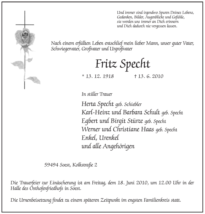 Hier finden Sie alle Traueranzeigen aus der Zeitung, die bisher für Fritz Specht erschienen sind. Weitere Traueranzeigen, die in der Zeitung erscheinen, werden hier ebenfalls aufgelistet
