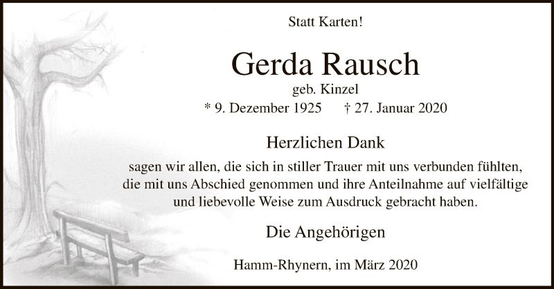 Hier finden Sie alle Traueranzeigen aus der Zeitung, die bisher für Gerda Rausch erschienen sind. Weitere Traueranzeigen, die in der Zeitung erscheinen, werden hier ebenfalls aufgelistet