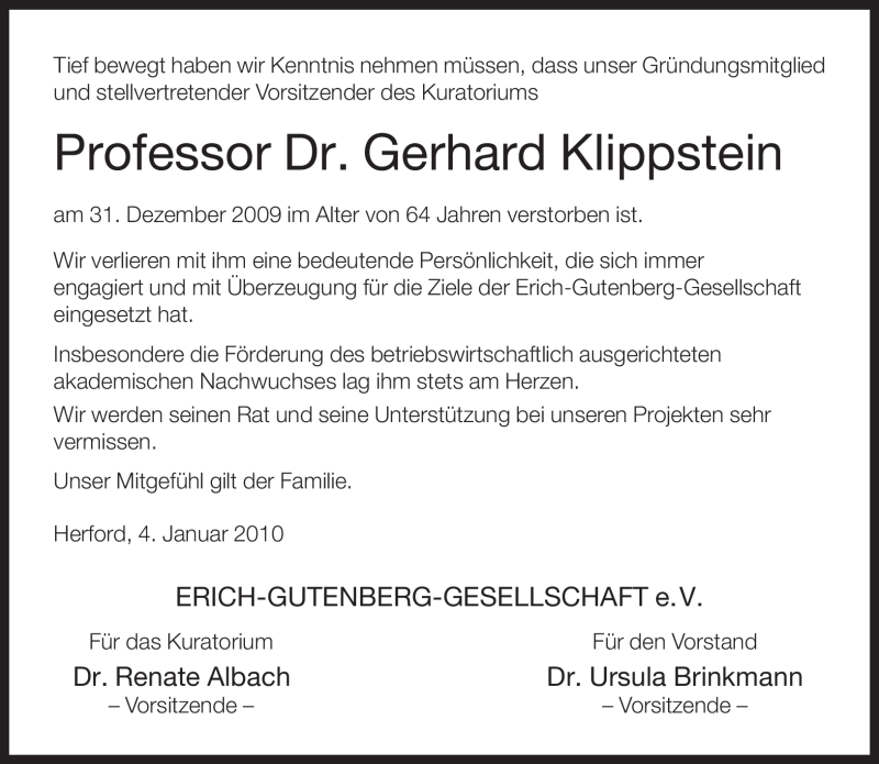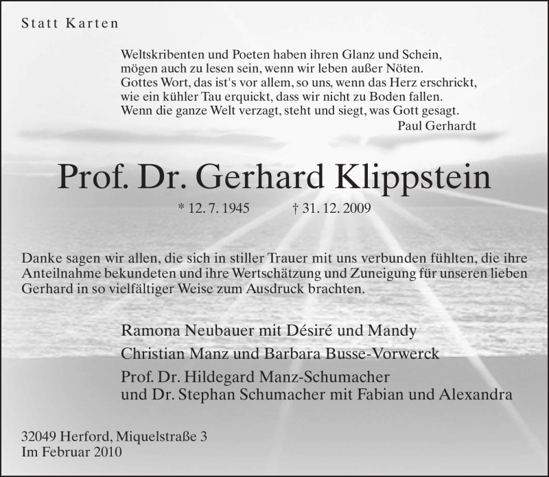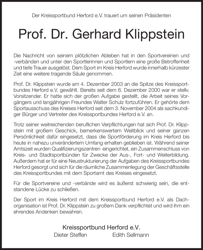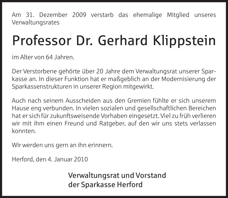 Hier finden Sie alle Traueranzeigen aus der Zeitung, die bisher für Gerhard Klippstein erschienen sind. Weitere Traueranzeigen, die in der Zeitung erscheinen, werden hier ebenfalls aufgelistet