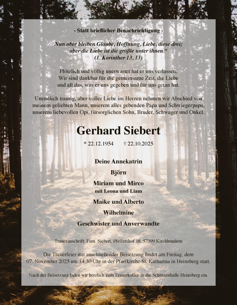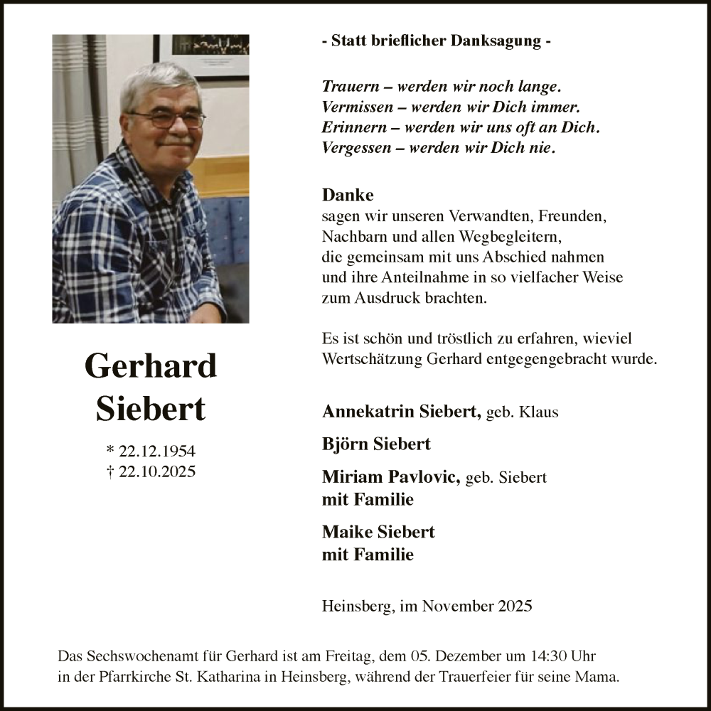 Hier finden Sie alle Traueranzeigen aus der Zeitung, die bisher für Gerhard Siebert erschienen sind. Weitere Traueranzeigen, die in der Zeitung erscheinen, werden hier ebenfalls aufgelistet