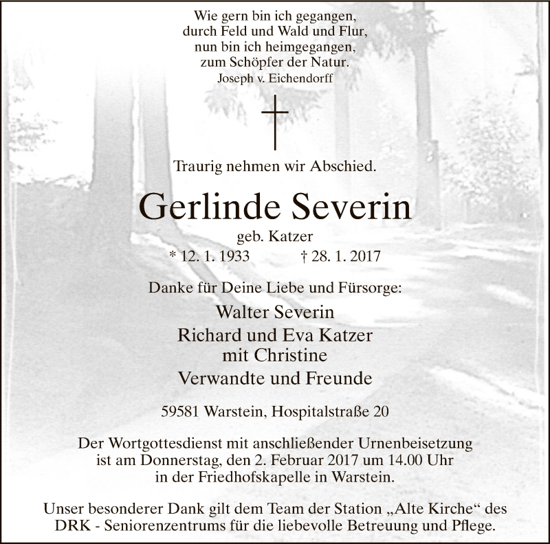 Hier finden Sie alle Traueranzeigen aus der Zeitung, die bisher für Gerlinde Severin erschienen sind. Weitere Traueranzeigen, die in der Zeitung erscheinen, werden hier ebenfalls aufgelistet