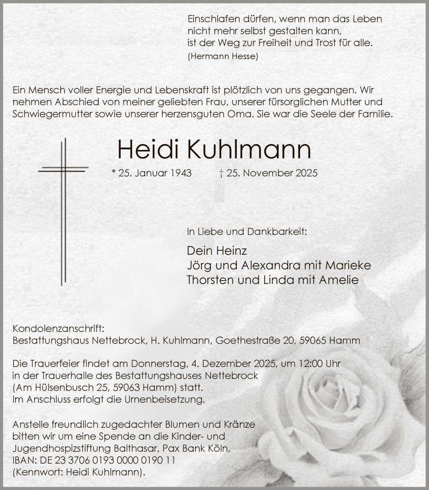 Hier finden Sie alle Traueranzeigen aus der Zeitung, die bisher für Heidi Kuhlmann erschienen sind. Weitere Traueranzeigen, die in der Zeitung erscheinen, werden hier ebenfalls aufgelistet
