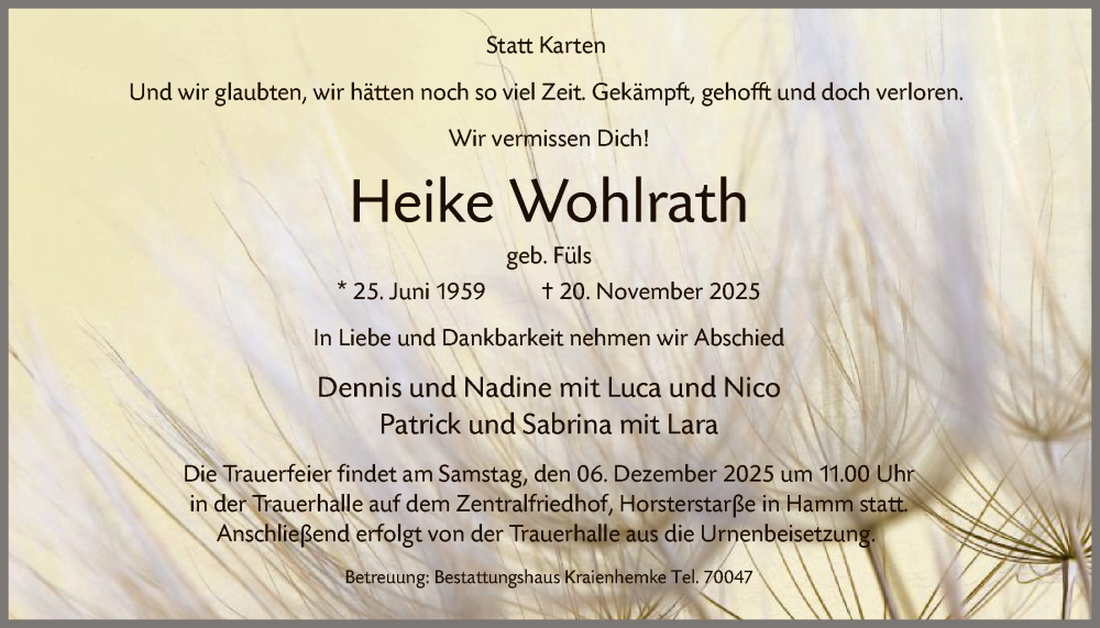 Hier finden Sie alle Traueranzeigen aus der Zeitung, die bisher für Heike Wohlrath erschienen sind. Weitere Traueranzeigen, die in der Zeitung erscheinen, werden hier ebenfalls aufgelistet