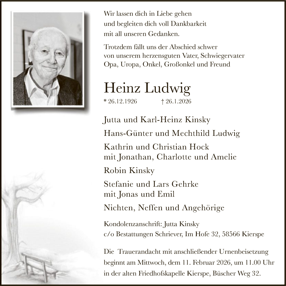 Hier finden Sie alle Traueranzeigen aus der Zeitung, die bisher für Heinz Ludwig erschienen sind. Weitere Traueranzeigen, die in der Zeitung erscheinen, werden hier ebenfalls aufgelistet