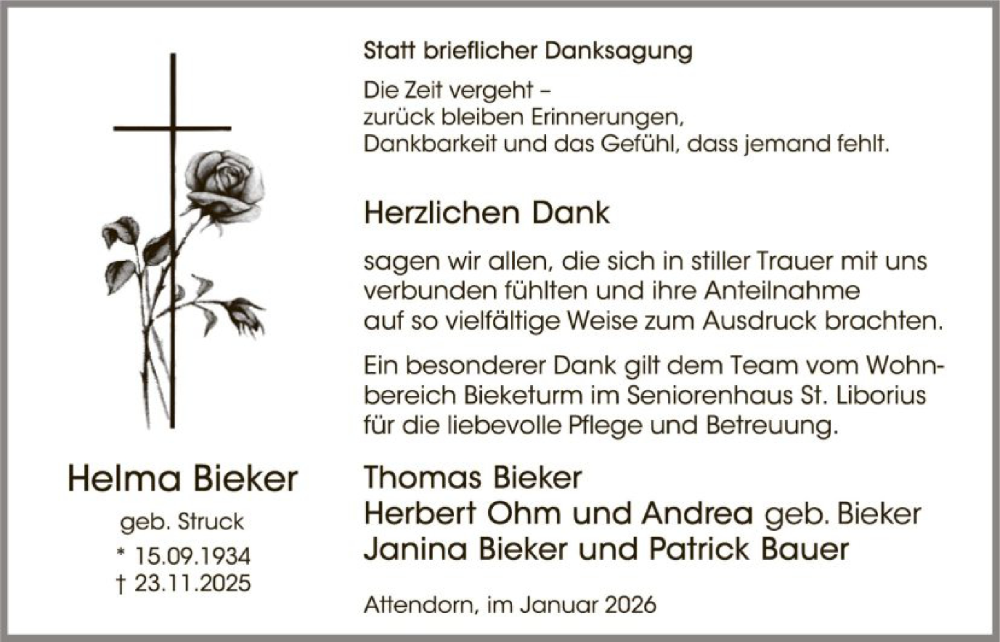 Hier finden Sie alle Traueranzeigen aus der Zeitung, die bisher für Helma Bieker erschienen sind. Weitere Traueranzeigen, die in der Zeitung erscheinen, werden hier ebenfalls aufgelistet