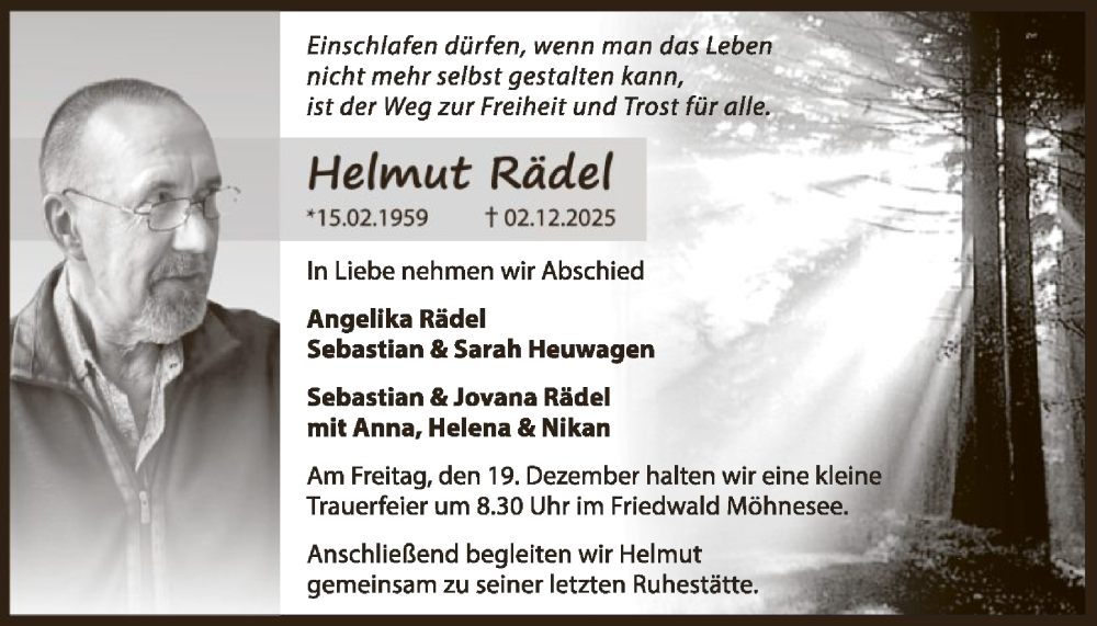 Hier finden Sie alle Traueranzeigen aus der Zeitung, die bisher für Helmut Rädel erschienen sind. Weitere Traueranzeigen, die in der Zeitung erscheinen, werden hier ebenfalls aufgelistet