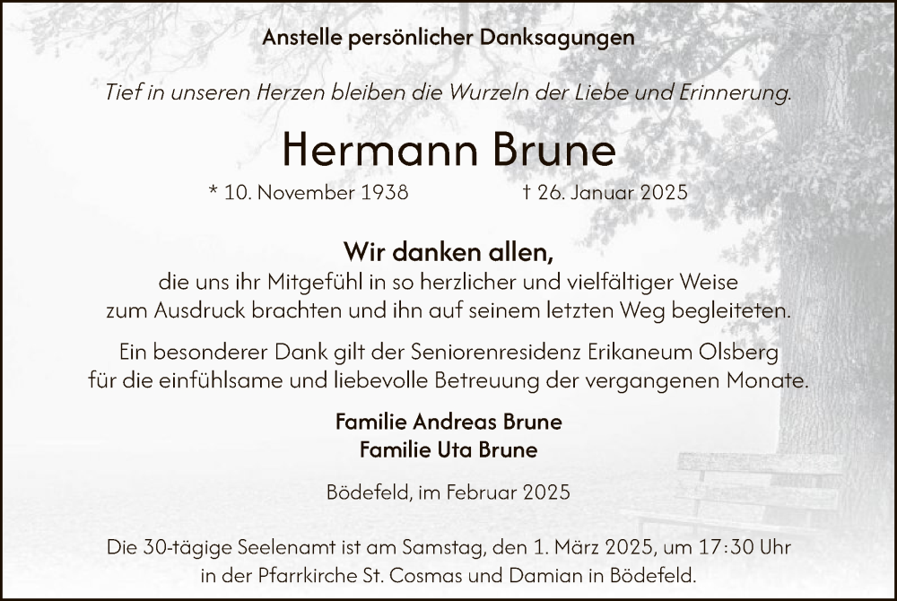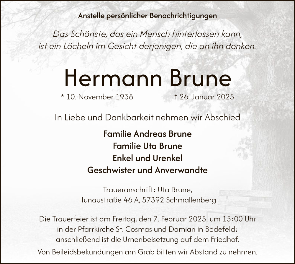 Hier finden Sie alle Traueranzeigen aus der Zeitung, die bisher für Hermann Brune erschienen sind. Weitere Traueranzeigen, die in der Zeitung erscheinen, werden hier ebenfalls aufgelistet
