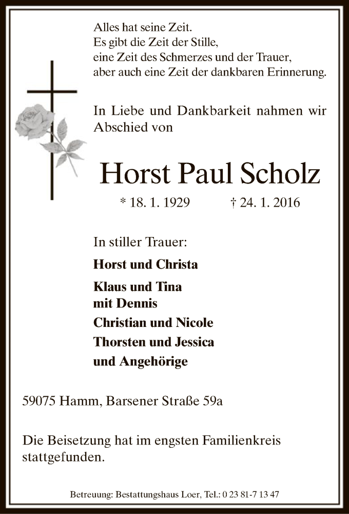 Hier finden Sie alle Traueranzeigen aus der Zeitung, die bisher für Horst Paul Scholz erschienen sind. Weitere Traueranzeigen, die in der Zeitung erscheinen, werden hier ebenfalls aufgelistet