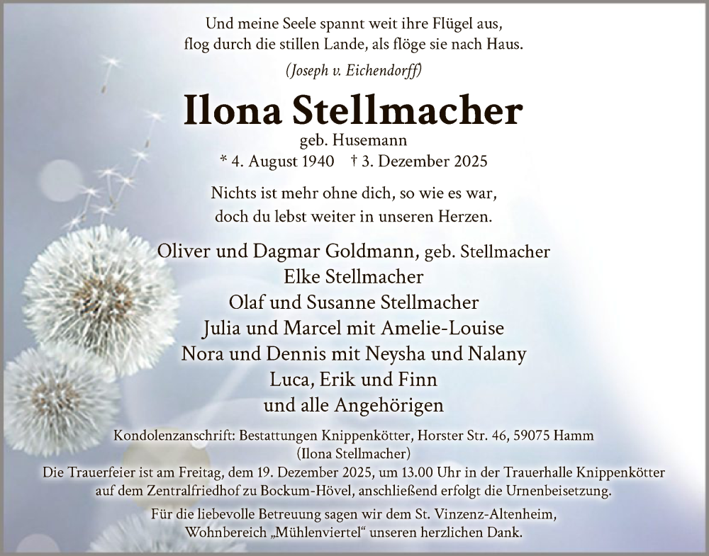 Hier finden Sie alle Traueranzeigen aus der Zeitung, die bisher für Ilona Stellmacher erschienen sind. Weitere Traueranzeigen, die in der Zeitung erscheinen, werden hier ebenfalls aufgelistet