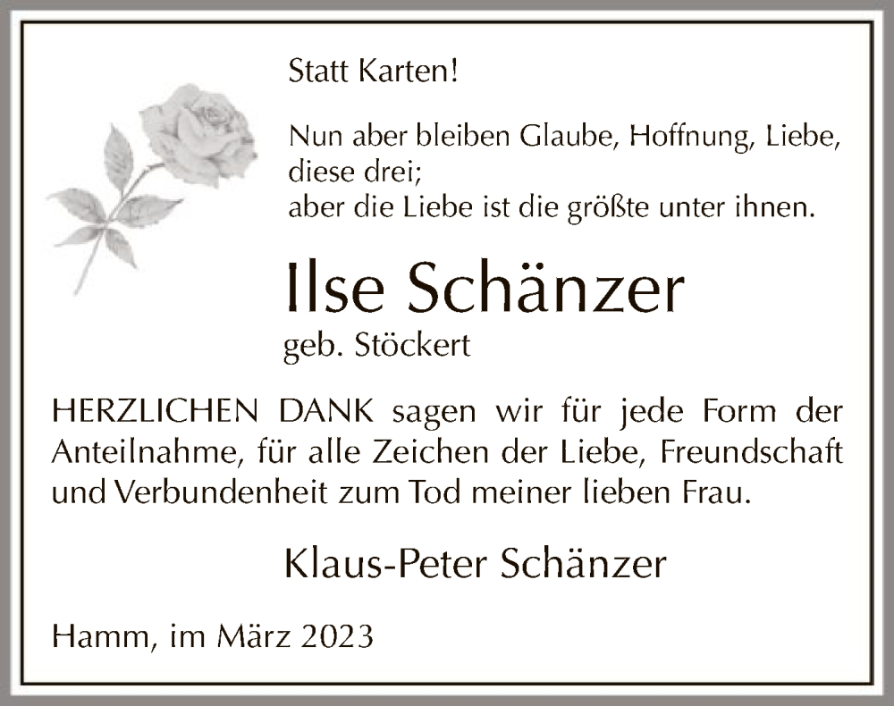 Hier finden Sie alle Traueranzeigen aus der Zeitung, die bisher für Ilse Schänzer erschienen sind. Weitere Traueranzeigen, die in der Zeitung erscheinen, werden hier ebenfalls aufgelistet