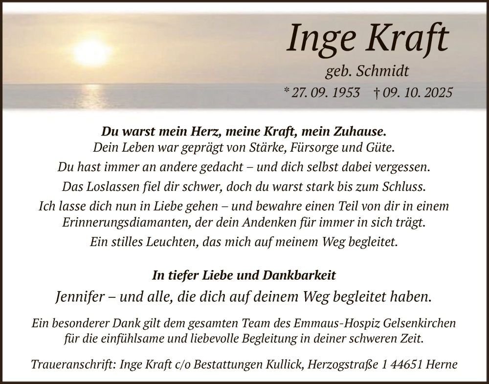Hier finden Sie alle Traueranzeigen aus der Zeitung, die bisher für Inge Kraft erschienen sind. Weitere Traueranzeigen, die in der Zeitung erscheinen, werden hier ebenfalls aufgelistet