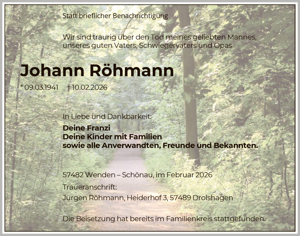 Hier finden Sie alle Traueranzeigen aus der Zeitung, die bisher für Johann Röhmann erschienen sind. Weitere Traueranzeigen, die in der Zeitung erscheinen, werden hier ebenfalls aufgelistet