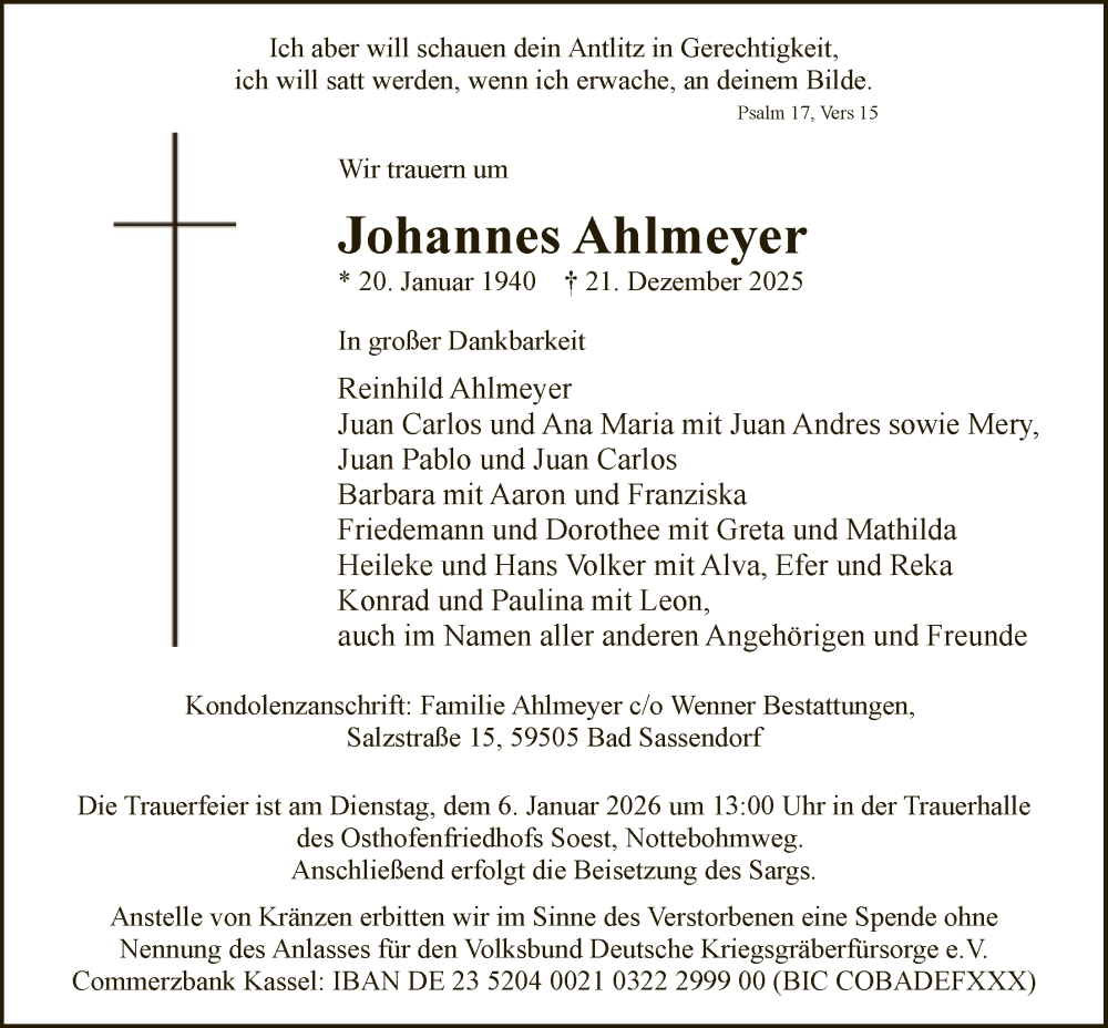 Hier finden Sie alle Traueranzeigen aus der Zeitung, die bisher für Johannes Ahlmeyer erschienen sind. Weitere Traueranzeigen, die in der Zeitung erscheinen, werden hier ebenfalls aufgelistet
