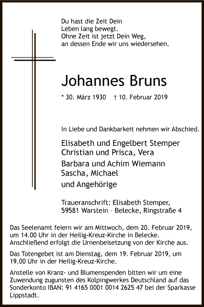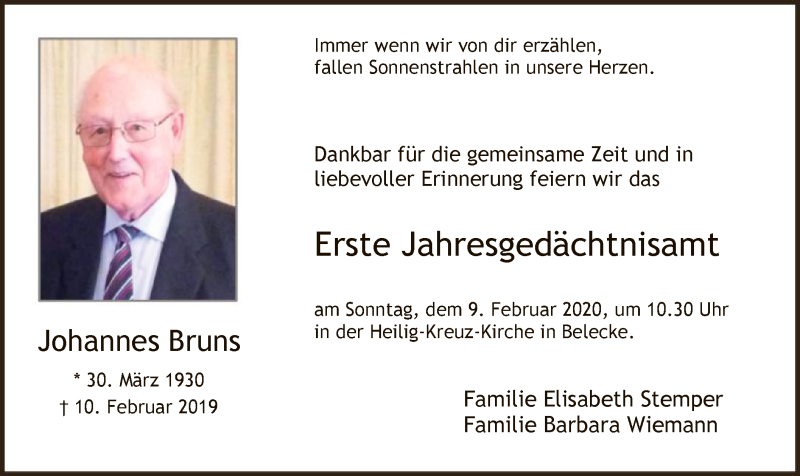Hier finden Sie alle Traueranzeigen aus der Zeitung, die bisher für Johannes Bruns erschienen sind. Weitere Traueranzeigen, die in der Zeitung erscheinen, werden hier ebenfalls aufgelistet