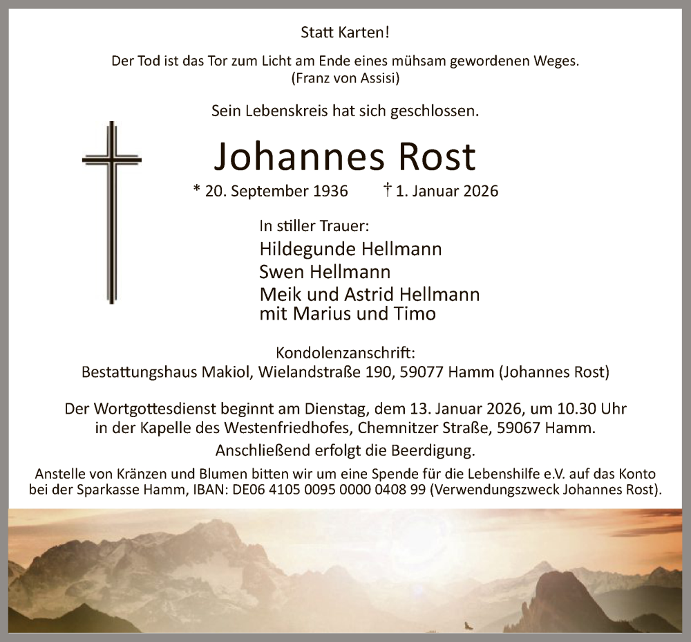 Hier finden Sie alle Traueranzeigen aus der Zeitung, die bisher für Johannes Rost erschienen sind. Weitere Traueranzeigen, die in der Zeitung erscheinen, werden hier ebenfalls aufgelistet