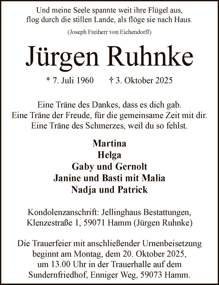 Hier finden Sie alle Traueranzeigen aus der Zeitung, die bisher für Jürgen Ruhnke erschienen sind. Weitere Traueranzeigen, die in der Zeitung erscheinen, werden hier ebenfalls aufgelistet