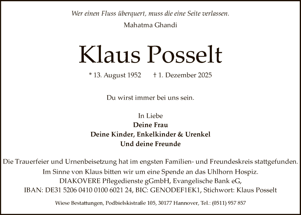 Hier finden Sie alle Traueranzeigen aus der Zeitung, die bisher für Klaus Posselt erschienen sind. Weitere Traueranzeigen, die in der Zeitung erscheinen, werden hier ebenfalls aufgelistet