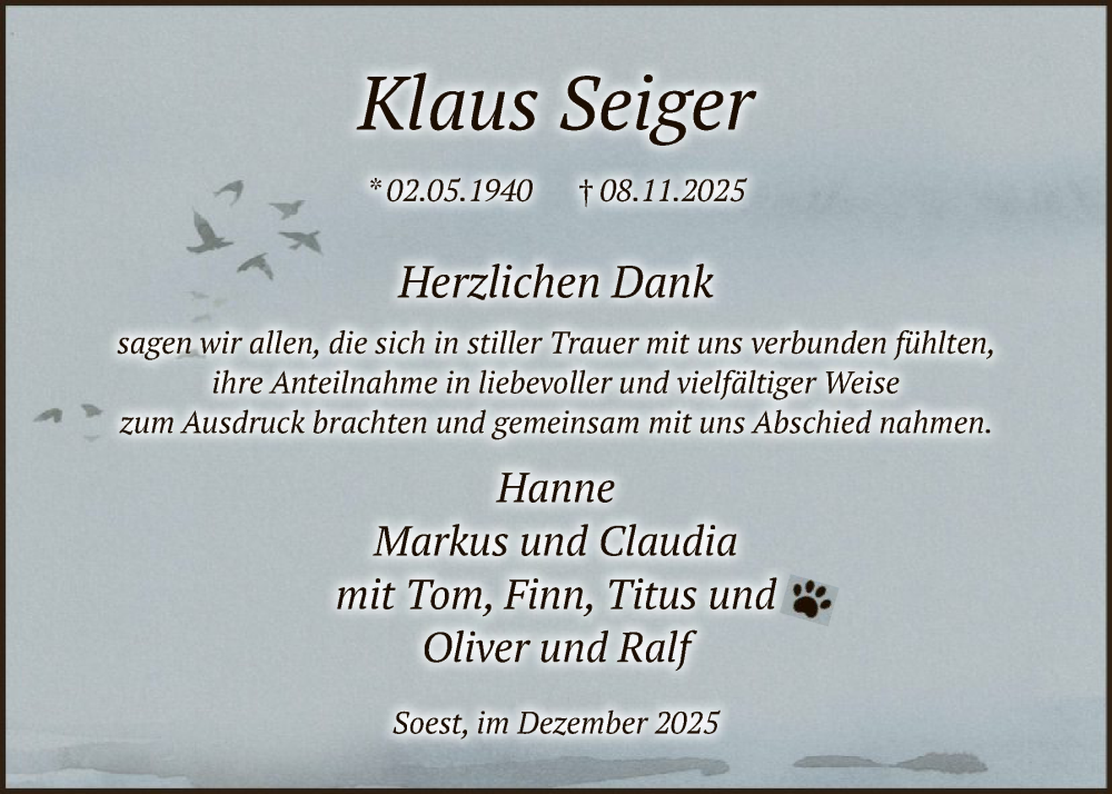 Hier finden Sie alle Traueranzeigen aus der Zeitung, die bisher für Klaus Seiger erschienen sind. Weitere Traueranzeigen, die in der Zeitung erscheinen, werden hier ebenfalls aufgelistet