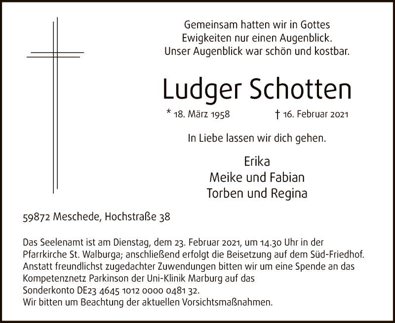Hier finden Sie alle Traueranzeigen aus der Zeitung, die bisher für Ludger Schotten erschienen sind. Weitere Traueranzeigen, die in der Zeitung erscheinen, werden hier ebenfalls aufgelistet