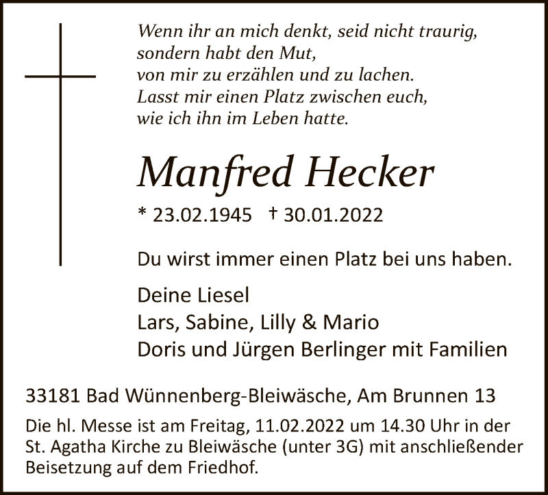 Hier finden Sie alle Traueranzeigen aus der Zeitung, die bisher für Manfred Hecker erschienen sind. Weitere Traueranzeigen, die in der Zeitung erscheinen, werden hier ebenfalls aufgelistet