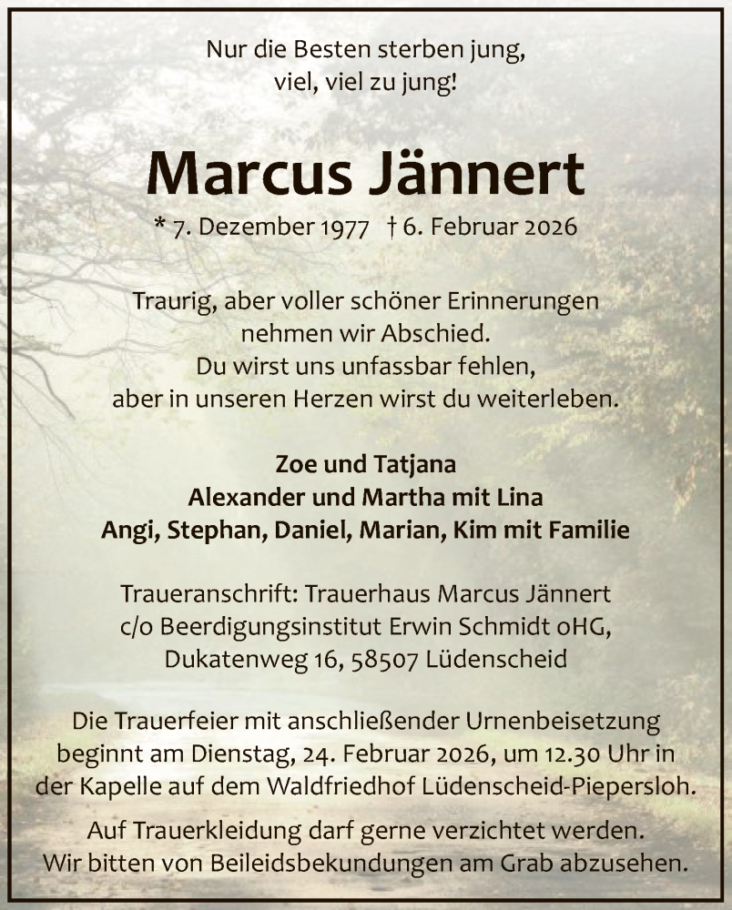 Hier finden Sie alle Traueranzeigen aus der Zeitung, die bisher für Marcus Jännert erschienen sind. Weitere Traueranzeigen, die in der Zeitung erscheinen, werden hier ebenfalls aufgelistet