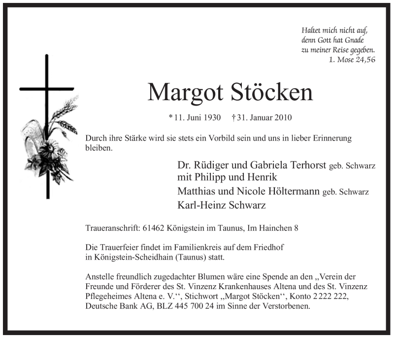 Hier finden Sie alle Traueranzeigen aus der Zeitung, die bisher für Margot Stöcken erschienen sind. Weitere Traueranzeigen, die in der Zeitung erscheinen, werden hier ebenfalls aufgelistet