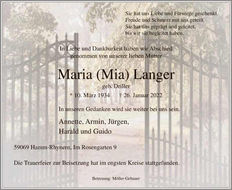 Hier finden Sie alle Traueranzeigen aus der Zeitung, die bisher für Maria Langer erschienen sind. Weitere Traueranzeigen, die in der Zeitung erscheinen, werden hier ebenfalls aufgelistet