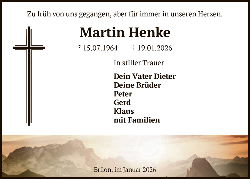 Hier finden Sie alle Traueranzeigen aus der Zeitung, die bisher für Martin Henke erschienen sind. Weitere Traueranzeigen, die in der Zeitung erscheinen, werden hier ebenfalls aufgelistet