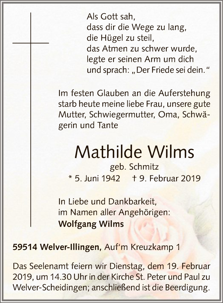 Hier finden Sie alle Traueranzeigen aus der Zeitung, die bisher für Mathilde Wilms erschienen sind. Weitere Traueranzeigen, die in der Zeitung erscheinen, werden hier ebenfalls aufgelistet