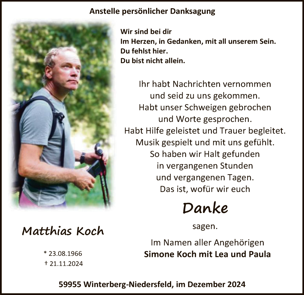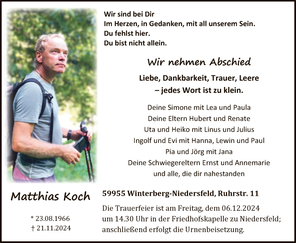Hier finden Sie alle Traueranzeigen aus der Zeitung, die bisher für Matthias Koch erschienen sind. Weitere Traueranzeigen, die in der Zeitung erscheinen, werden hier ebenfalls aufgelistet