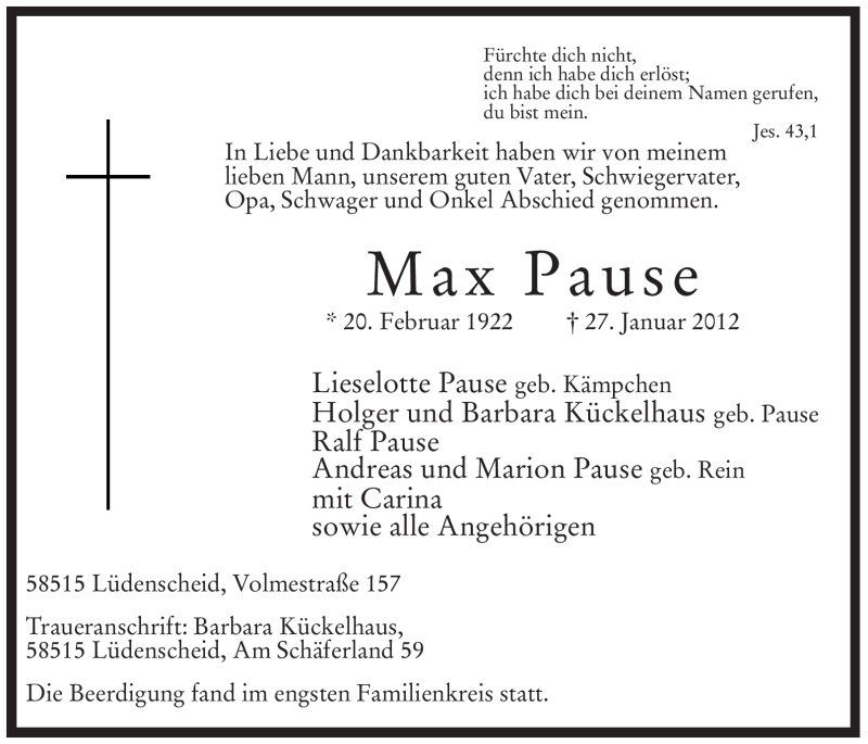 Hier finden Sie alle Traueranzeigen aus der Zeitung, die bisher für Max Pause erschienen sind. Weitere Traueranzeigen, die in der Zeitung erscheinen, werden hier ebenfalls aufgelistet