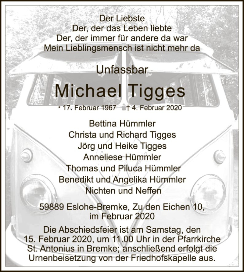 Hier finden Sie alle Traueranzeigen aus der Zeitung, die bisher für Michael Tigges erschienen sind. Weitere Traueranzeigen, die in der Zeitung erscheinen, werden hier ebenfalls aufgelistet