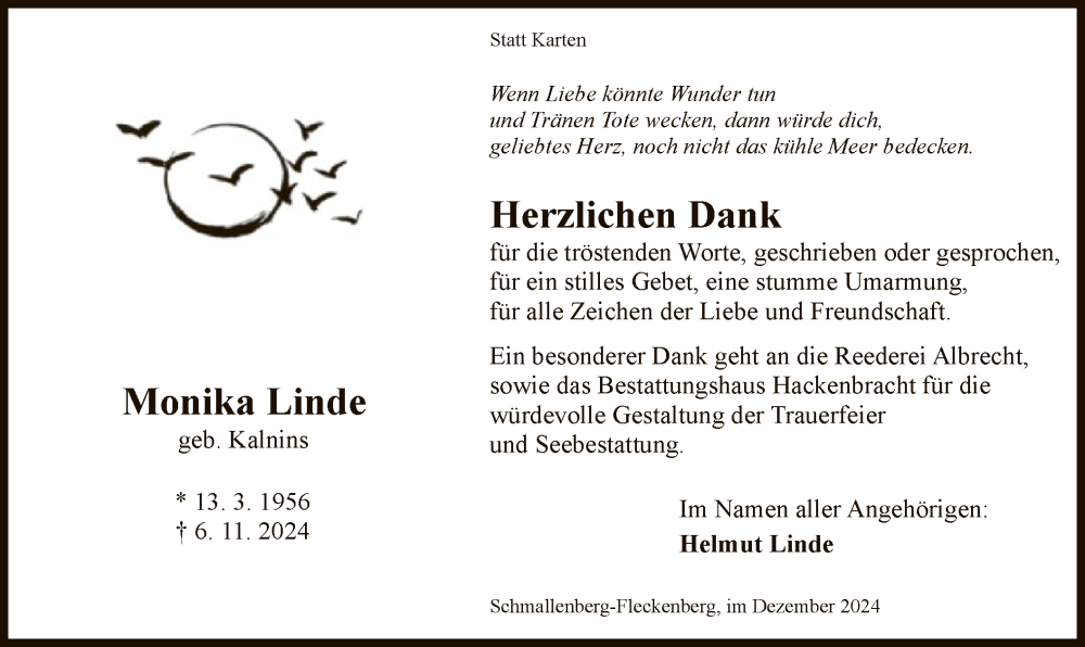 Hier finden Sie alle Traueranzeigen aus der Zeitung, die bisher für Monika Linde erschienen sind. Weitere Traueranzeigen, die in der Zeitung erscheinen, werden hier ebenfalls aufgelistet