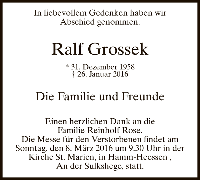 Hier finden Sie alle Traueranzeigen aus der Zeitung, die bisher für Ralf Grossek erschienen sind. Weitere Traueranzeigen, die in der Zeitung erscheinen, werden hier ebenfalls aufgelistet