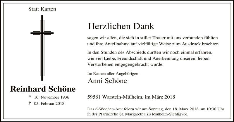 Hier finden Sie alle Traueranzeigen aus der Zeitung, die bisher für Reinhard Schöne erschienen sind. Weitere Traueranzeigen, die in der Zeitung erscheinen, werden hier ebenfalls aufgelistet