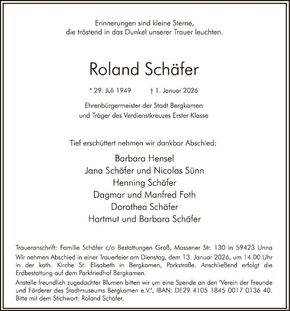 Hier finden Sie alle Traueranzeigen aus der Zeitung, die bisher für Roland Schäfer erschienen sind. Weitere Traueranzeigen, die in der Zeitung erscheinen, werden hier ebenfalls aufgelistet