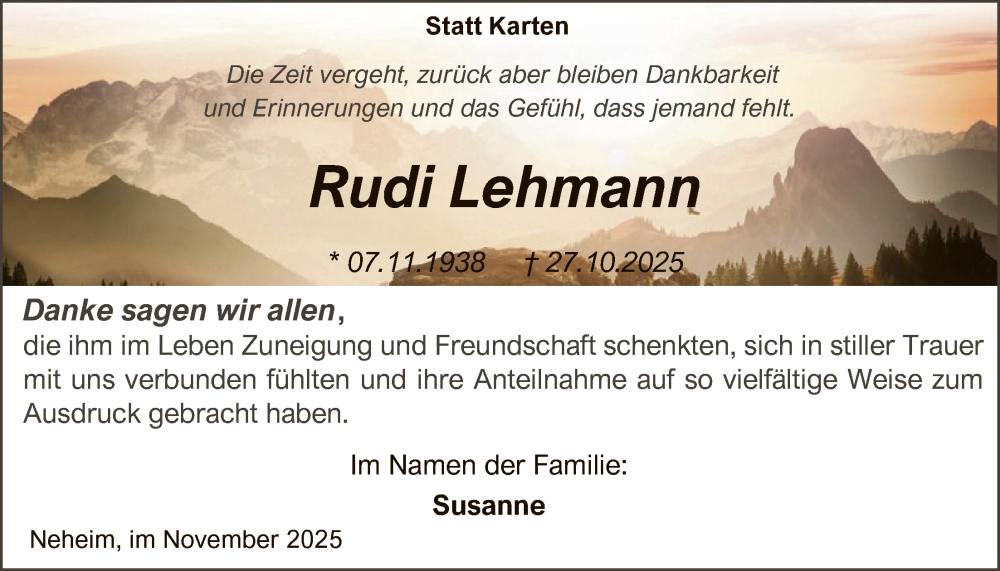 Hier finden Sie alle Traueranzeigen aus der Zeitung, die bisher für Rudi Lehmann erschienen sind. Weitere Traueranzeigen, die in der Zeitung erscheinen, werden hier ebenfalls aufgelistet
