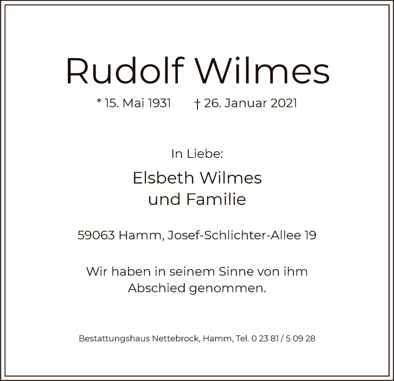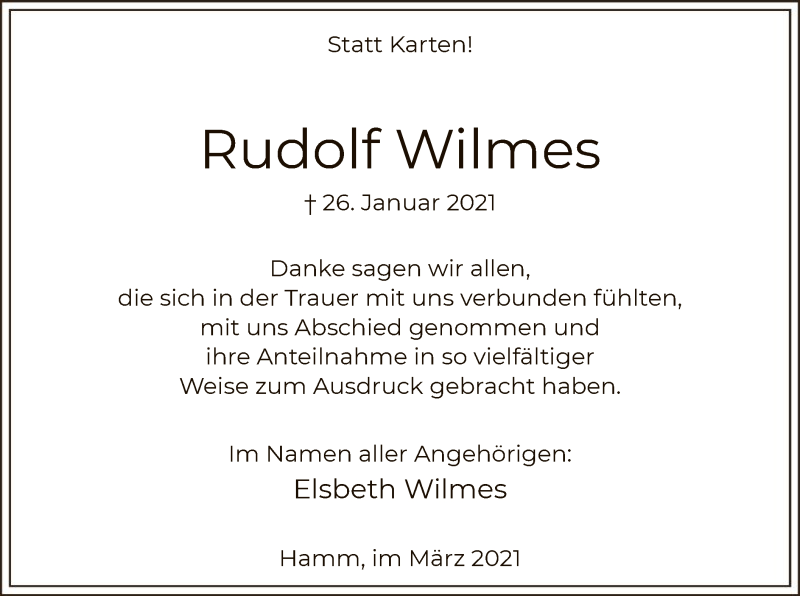 Hier finden Sie alle Traueranzeigen aus der Zeitung, die bisher für Rudolf Wilmes erschienen sind. Weitere Traueranzeigen, die in der Zeitung erscheinen, werden hier ebenfalls aufgelistet