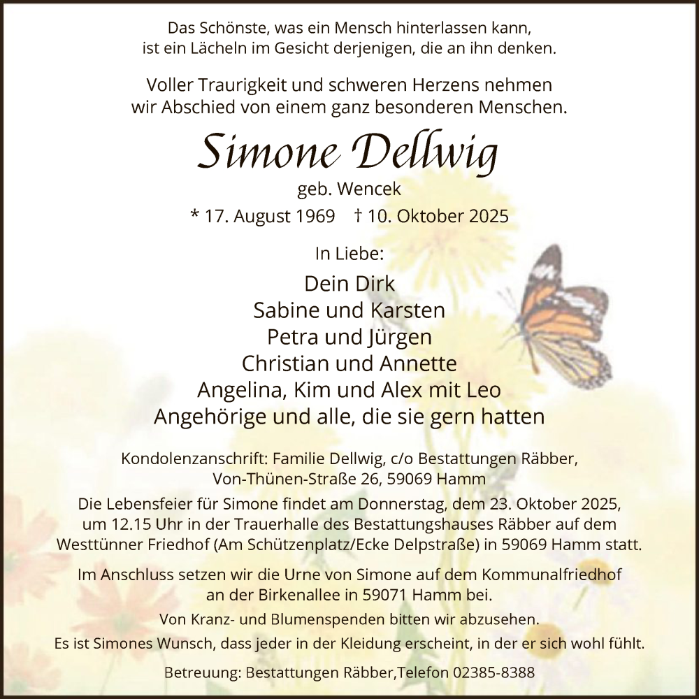 Hier finden Sie alle Traueranzeigen aus der Zeitung, die bisher für Simone Dellwig erschienen sind. Weitere Traueranzeigen, die in der Zeitung erscheinen, werden hier ebenfalls aufgelistet