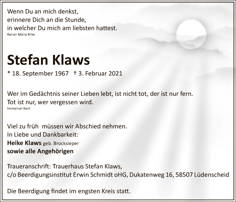 Hier finden Sie alle Traueranzeigen aus der Zeitung, die bisher für Stefan Klaws erschienen sind. Weitere Traueranzeigen, die in der Zeitung erscheinen, werden hier ebenfalls aufgelistet