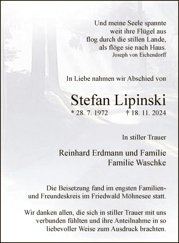 Hier finden Sie alle Traueranzeigen aus der Zeitung, die bisher für Stefan Lipinski erschienen sind. Weitere Traueranzeigen, die in der Zeitung erscheinen, werden hier ebenfalls aufgelistet