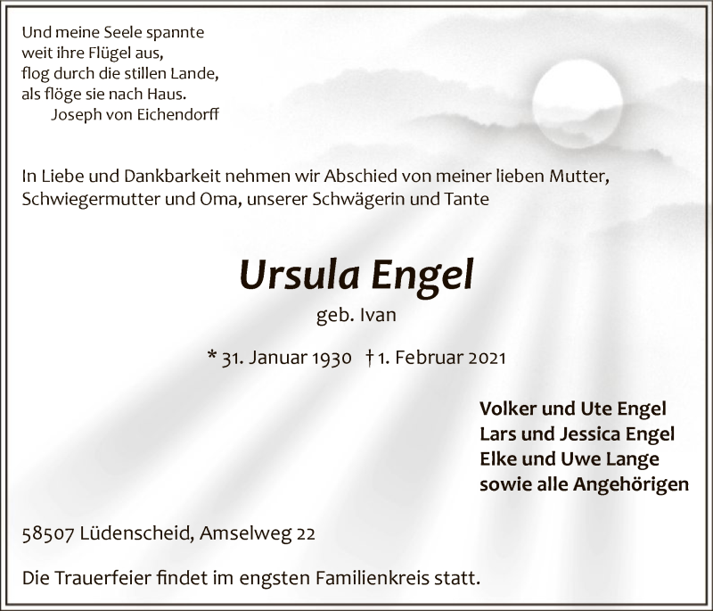 Hier finden Sie alle Traueranzeigen aus der Zeitung, die bisher für Ursula Engel erschienen sind. Weitere Traueranzeigen, die in der Zeitung erscheinen, werden hier ebenfalls aufgelistet