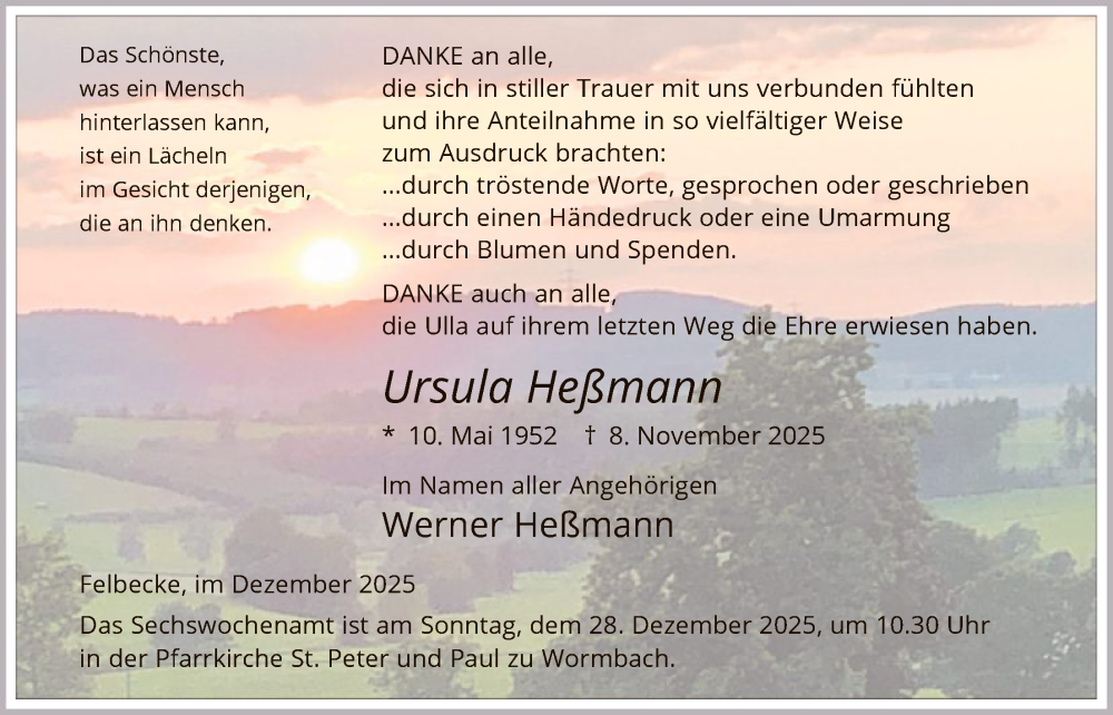Hier finden Sie alle Traueranzeigen aus der Zeitung, die bisher für Ursula Heßmann erschienen sind. Weitere Traueranzeigen, die in der Zeitung erscheinen, werden hier ebenfalls aufgelistet