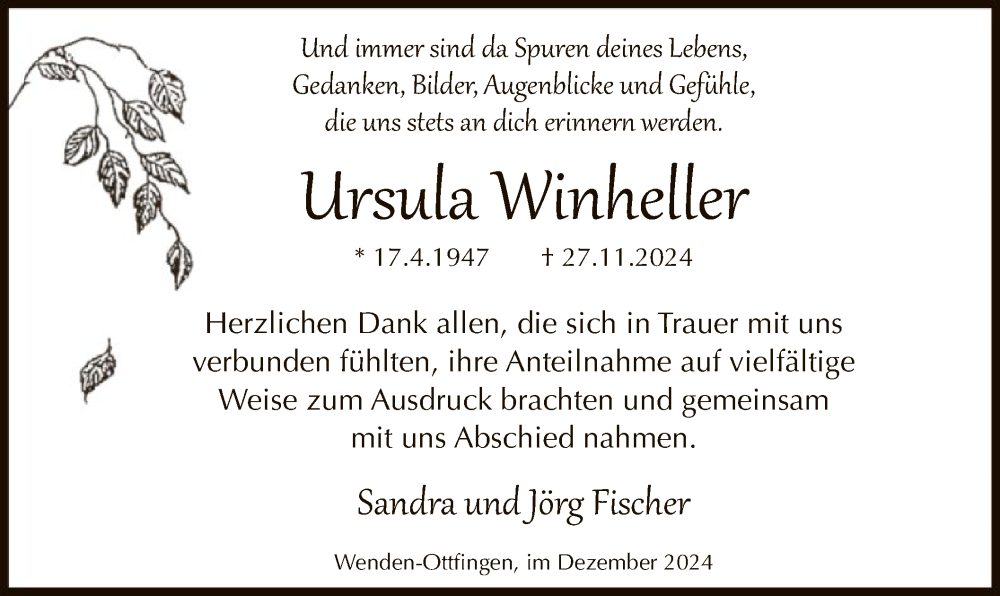 Hier finden Sie alle Traueranzeigen aus der Zeitung, die bisher für Ursula Winheller erschienen sind. Weitere Traueranzeigen, die in der Zeitung erscheinen, werden hier ebenfalls aufgelistet
